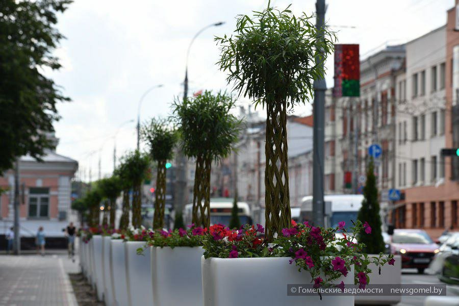 Псеўдапальмы ў кадках замест дрэваў у цэнтры Гомеля. Фота: газета «Гомельские ведомости»