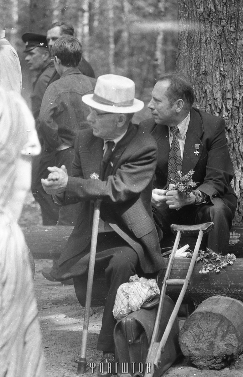 Адсканаваўшы чорна белую стужку, мы пабачылі сціплую сустрэчу жывых сведкаў Другой сусветнай. Старыя фотаздымкі былі зробленыя гомельскім фатографам Сямёнам Хейфецэм падчас штогадовай жнівеньскай сустрэчы ў першай палове 1970-х гадоў. Больш дакладную дату высветліць не атрымалася.