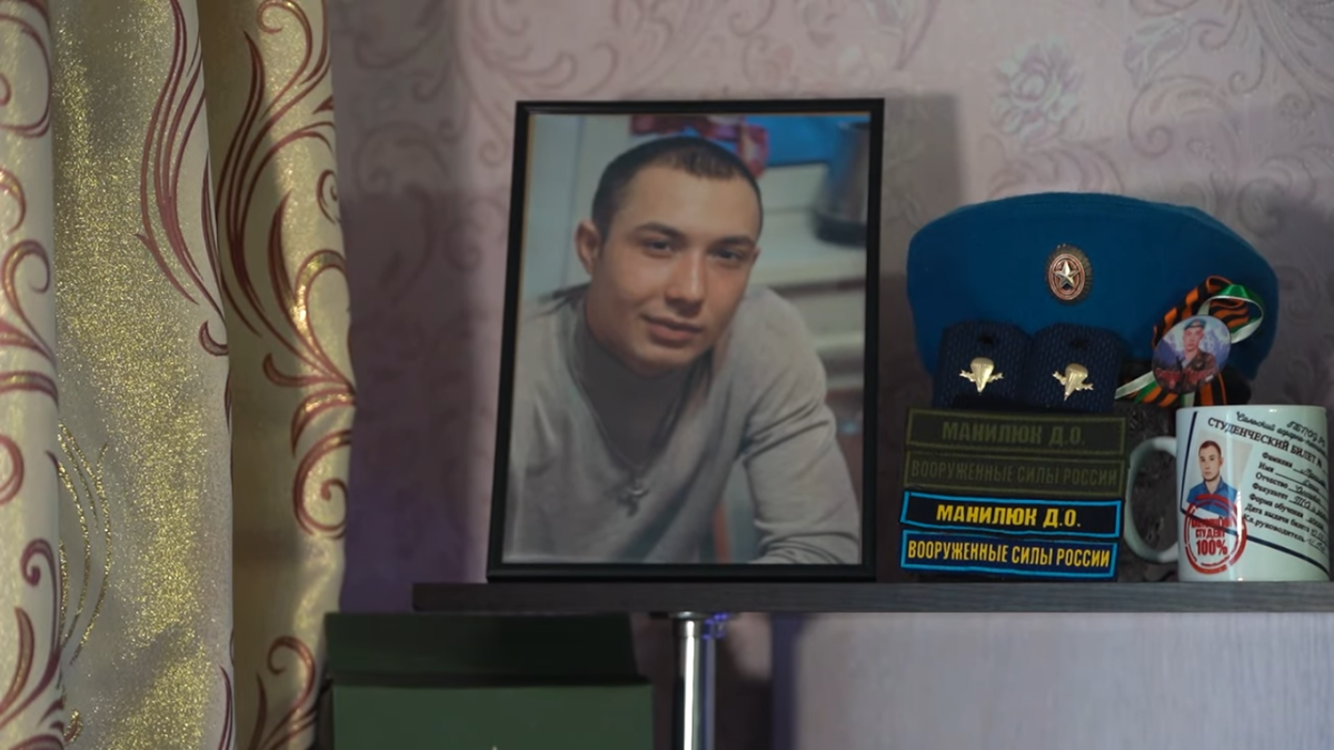 21-летний ефрейтор Денис Манилюк погиб 14 марта 2022 года в селе Лубянка Бучанского района Киевской области. А в ноябре о нем выпустили пропагандистский фильм с участием родителей погибшего. Также в конце ноября на фасаде школы в селе Крученая Балка, где учился парень, открыли мемориальную доску. Мать рассказывает в фильме: