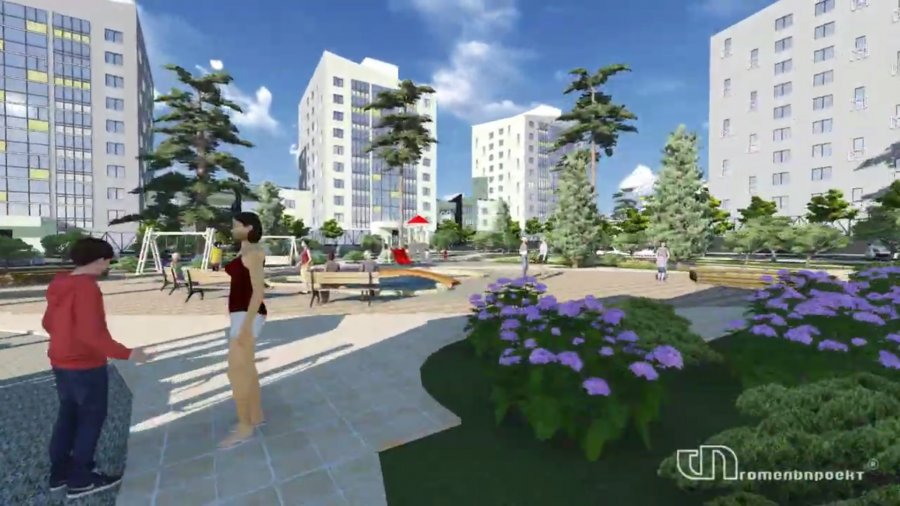 Визуализация жилых кварталов демонстрирует представления гомельских проектировщиков о современном жилом комплексе средней ценовой категории. Примерно такой бы могла быть массовая жилая застройка и в Гомеле, если бы гомельчане были богаче.