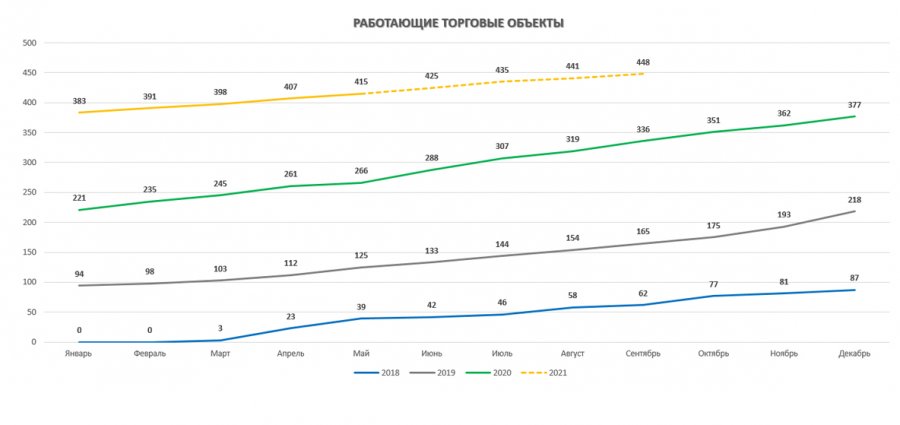 Впрочем, информация, содержащаяся в отчетности предприятия, свидетельствует об иных причинах убытков. Дело в том, что, несмотря на постоянное увеличение числа новых павильонов-табакерок, объем продаж практически не увеличился, начиная с конца 2018 года. В связи с этим возникает логичный вопрос — для чего только в 2020 году компания открыла в Гомельской области 139 новых объектов, если это не приводит к увеличению продажи сигарет? Между тем, общее число установленных Табакерок в Гомельской области в мае 2021 года составило уже 453 единицы, из которых 72 взяты в аренду.
