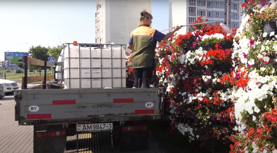 Однако, как выяснилось, самые большие сложности для коммунальных предприятий представляет полив однолетних петуний. Если дерево или кусты можно поливать несколько раз в неделю, то подвесным цветам на улицах Гомеля необходимо ежедневная влажность.