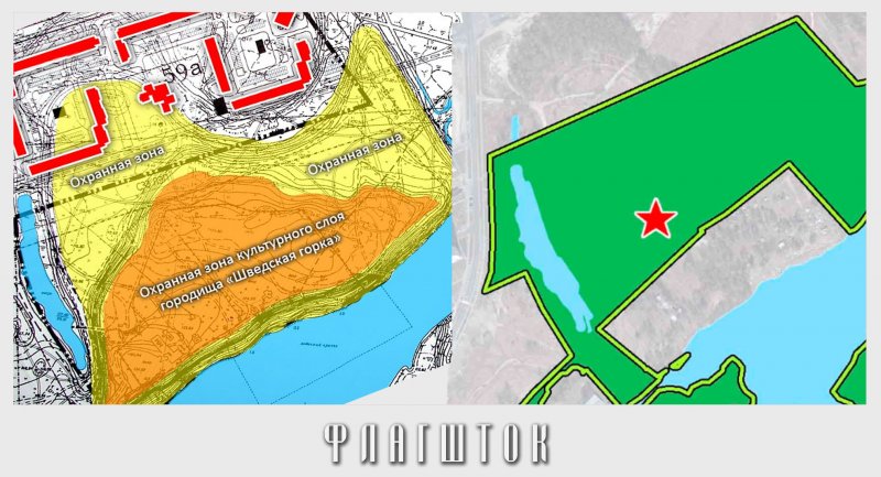 - Охранная зона городища железного века "Шведская Горка". Схема зеленых зон общего пользования не захватила озелененную территорию охранной зоны памятника археологии. В будущем это угрожает тем, что панельный микрорайон подойдет непосредственно к древнему городищу.