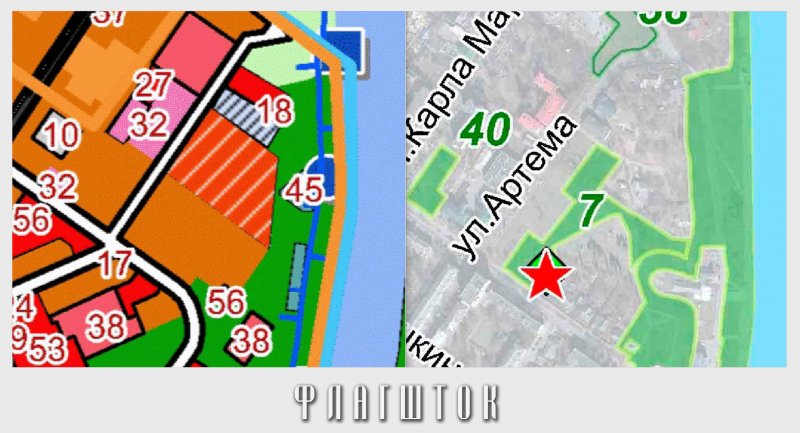 - Квартал между ул. Артема и ул. Садовая. По-прежнему конфигурация зеленой зоны на схеме и зоны многоквартирной застройки генплана оставляют возможность возвести секционный жилой дом вдоль улицы Артёма.