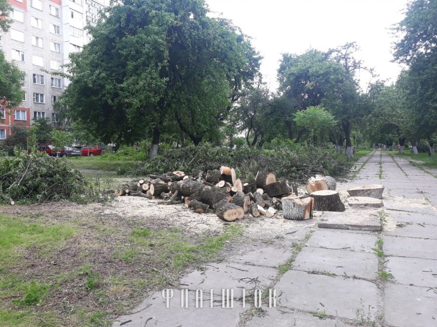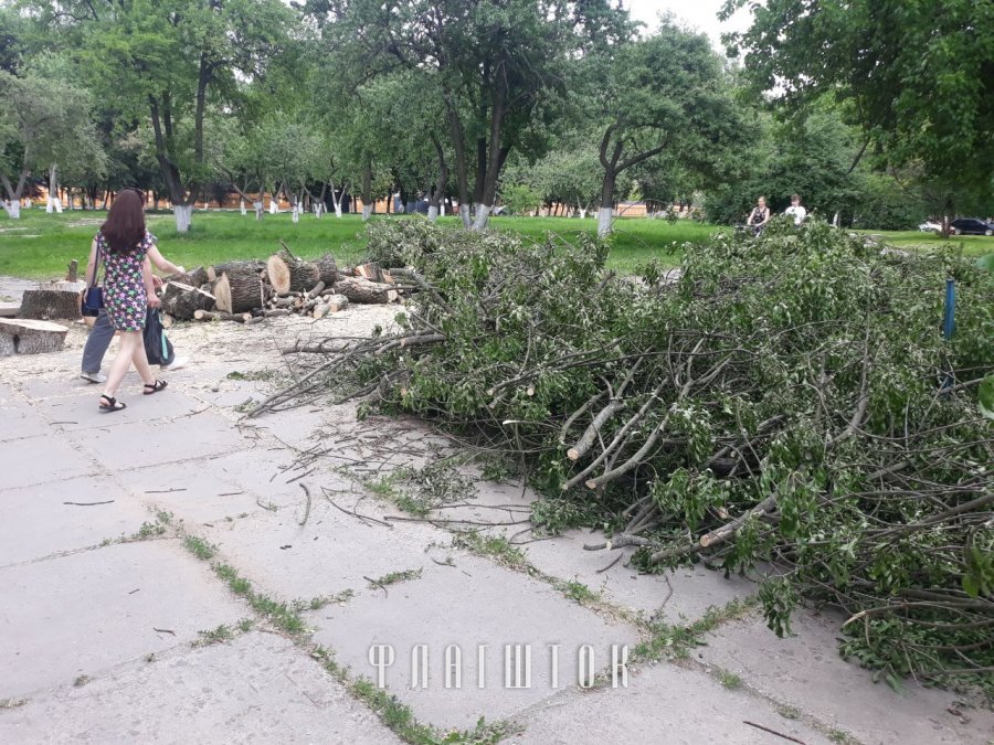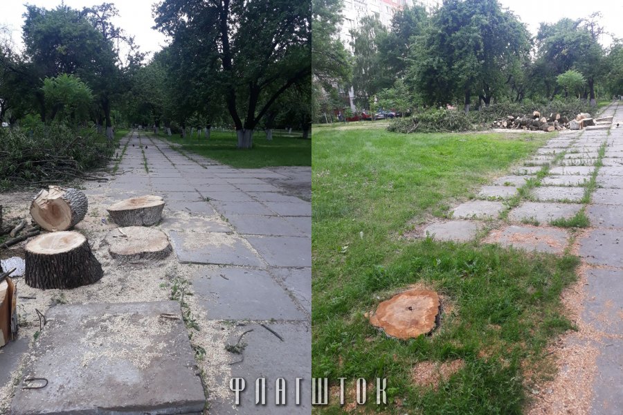 По каким причинам для благоустройства понадобилось срезать несколько взрослых плодовых деревьев, пока неизвестно. Все они росли десятки лет на центральной аллее. Флагшток следит за ситуацией.