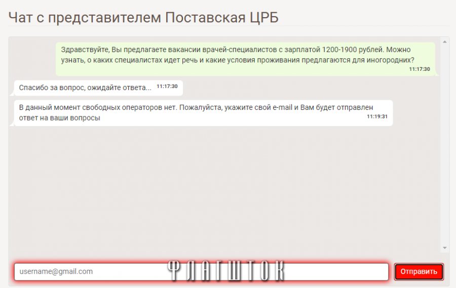 Самыми высокооплачиваемыми оказались две вакансии врачей-специалистов с зарплатой 1900 рублей. К сожалению, попытки выяснить, о какой врачебной специализации идет речь, успехом не увенчались. Как и во время предыдущих электронных ярмарок, представителя организации по ту сторону экрана не оказалось. Вместо ожидаемого диалога с представителями организаций чат-бот уже через две минуты предложил указать свой e-mail адрес, на который впоследствии будет отправлен ответ на поставленный вопрос.
