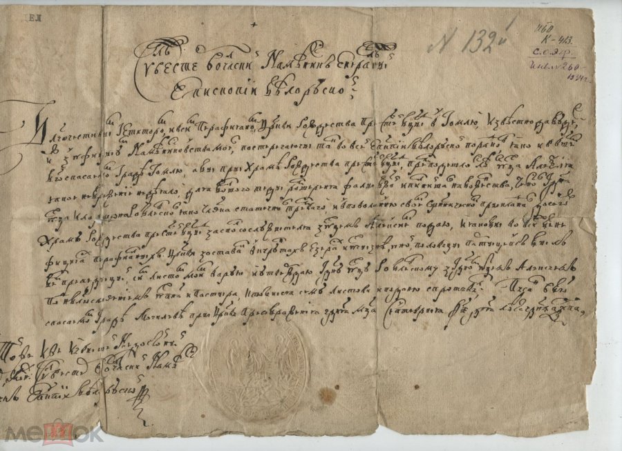 «Письмо наместника Белорусской епископии. XVII-XVIII вв. Гомель. Могилёв» — так документ был подписан на сайте российского аукциона meshok.net. Как оказалось, это подательная грамота наместника Белорусской (Могилёвской) православной епархии иеромонаха Сильвестра Волчанского иерею Иллариону Роблевскому на место викарного священника при церкви Рождества Богородицы в местечке Гомель Речицкого повета Великого княжества Литовского.