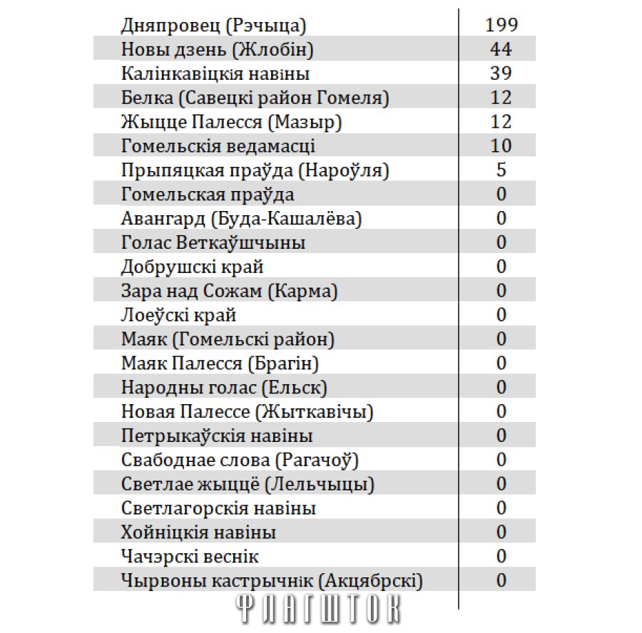 Наиболее активно обращаются в редакцию местной газеты и интернет-портала жители Речицы. Статистика зафиксировала в среднем более 6 обращений в день. Активная коммуникация с редакциями местных госизданий отмечена также в Жлобине и Калинковичах.