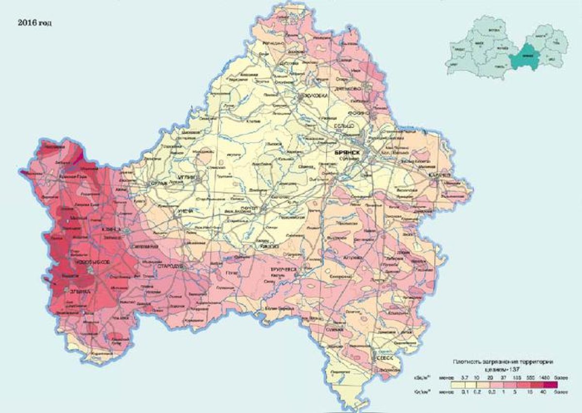 Загрязнение Брянской области Цезием-137 в 2016 году (сегодня леса горят вдоль северной границы Брянской области)