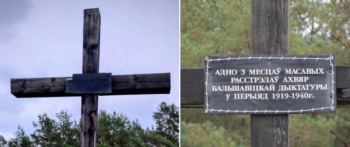 На опубликованных фото видно, что надпись на кресте на беларусском языке «Одно из мест массовых расстрелов жертв большевистской диктатуры в период 1919-1940 г.» практически не видна. Надпись выцвела, как и краска на самом кресте, а привести место памяти в порядок в нынешних условиях никто не решается.