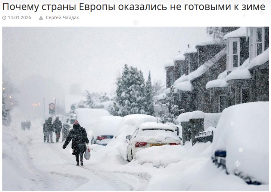 Зато пропагандист похвалился, что «почти два часа очищал от снега собственный двор, подъезды и подходы к дому». Видимо, он не знает, что в странах Западной Европы владельцы домов в частном секторе делают то же самое на постоянной основе.