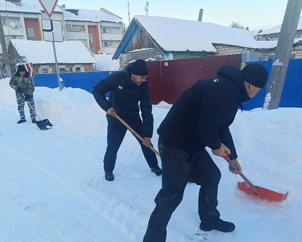 Снег в Буда-Кошелево убирают состоящие на учете в уголовно-исполнительной инспекции. Фото: «Авангард»