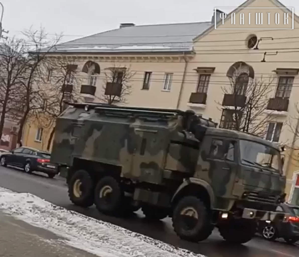 Кадры с передвижения в Новобелицком районе Гомеля ракетного комплекса Ураган накануне вторжения РФ в Украину с территории Гомельской области