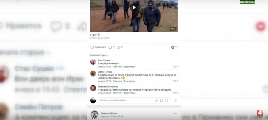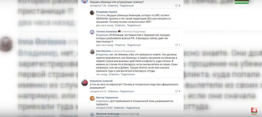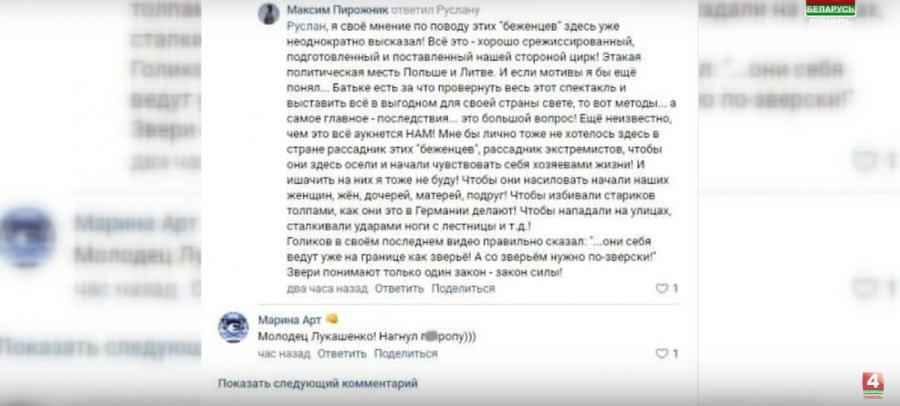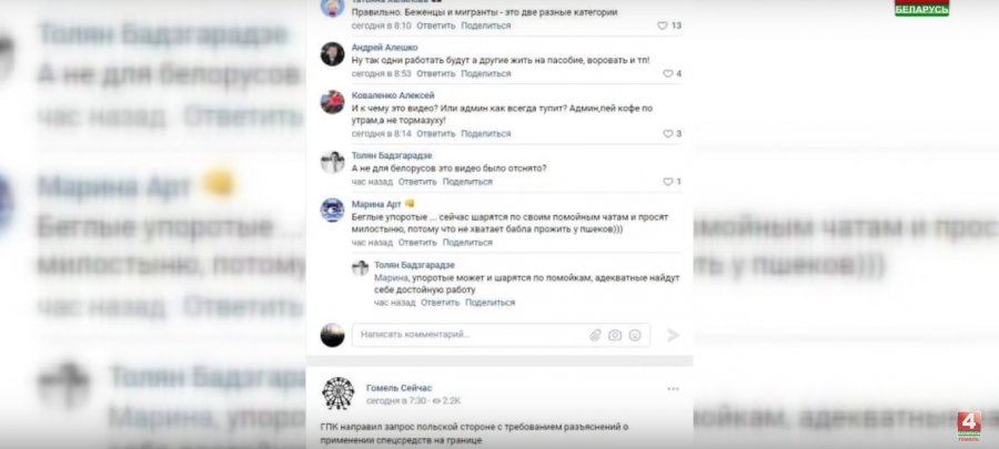 «Пока Запад продолжает издевательства над беженцами на границе с Польшей, виртуальные эксперты устраивают свою информационную войну. Читаешь комментарии — и становится противно. Неужели некоторые наши земляки настолько одеревенели сердцем, что готовы призывать к массовому унижению людей с другим цветом кожи?»