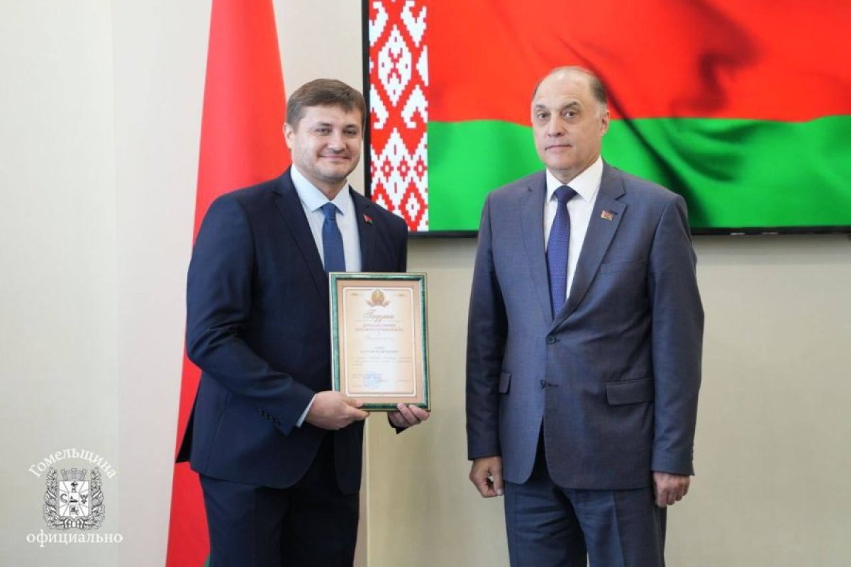 Александр Вольфович поздравляет Валерия Стому. Фото: Гомельщина официально