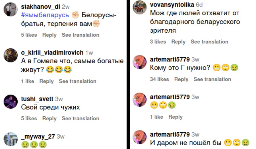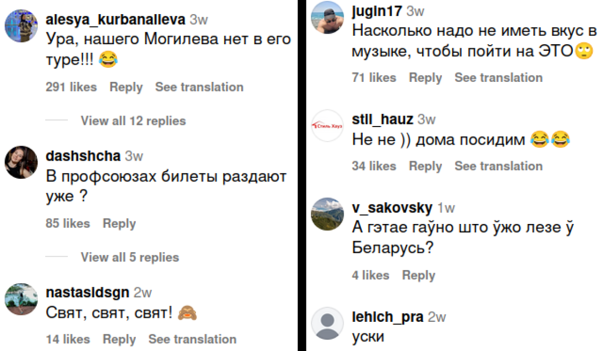 Флагшток посмотрел, как на новость отреагировали подписчики этого билетного оператора на его официальной странице в Инстаграм — и нашел только один позитивный комментарий среди десятков негативных. Примеры откликов беларусов — на скриншотах ниже.