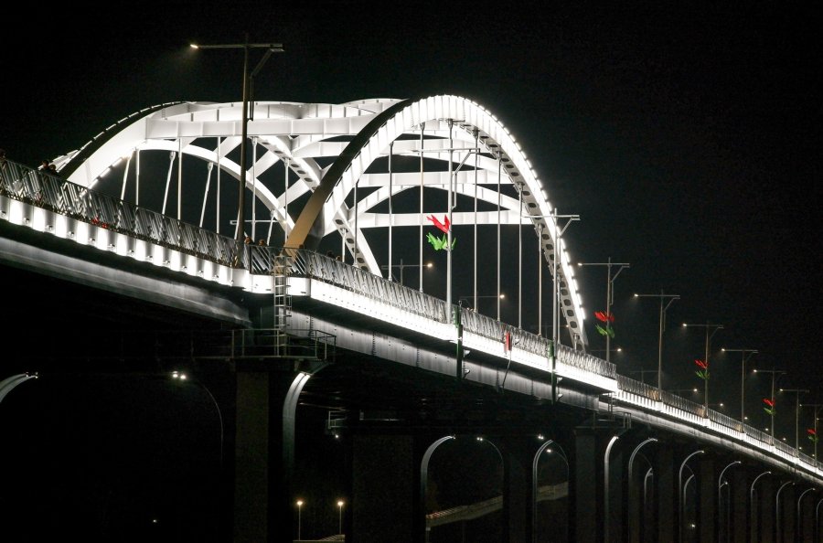 «В ДЭУ-43 пояснили, что на днях была переналадка системы, и действительно подсветку самой арки на время отключили. Но это не могло и не нарушило освещение самого моста — фонари исправно освещали дорогу для водителей».