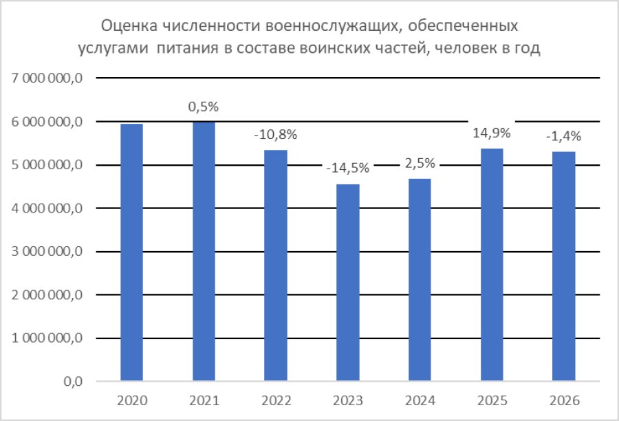 Итак, в 2026 году Минобороны планирует прокормить 5 млн 299 тыс. 800 чел/год личного состава воинских частей, выделив на это 93 млн 066 тыс. 196 рублей (более 32,2 млн долларов). Количество необходимо разделить на число дней в году — получается, 14 тыс. 520 человек. Предположительно, столько новобранцев призовут в этом году в воинские части Минобороны.