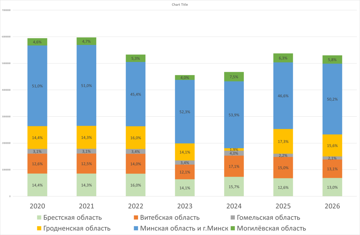 Наибольшее количество военнослужащих на протяжении года будет находиться в воинских частях Минска и Минской области — 2 млн 663 тыс. 040 чел/год. На втором месте Гродненская область — 829 тыс. 280 чел/год. На третьем — Витебская: 693 тыс. 500 чел/год. Далее — Брестская область: 690 тыс. 580 чел/год. В Могилевской — 309 тыс. 520 чел/год. Наименьшее присутствие военнослужащих в Гомельской области — 113 тыс. 880 чел/год.
