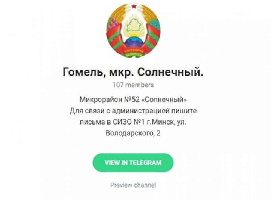 Теперь в описании канала можно увидеть странное сообщение: «Для связи с администрацией пишите письма в СИЗО №1 г.Минск, ул. Володарского, 2».