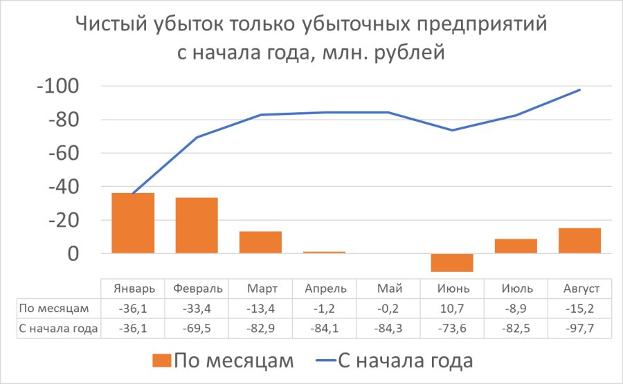 Инфографика Флагштока: чистый убыток только убыточных предприятий Жлобинского района с начала года в миллионах рублей