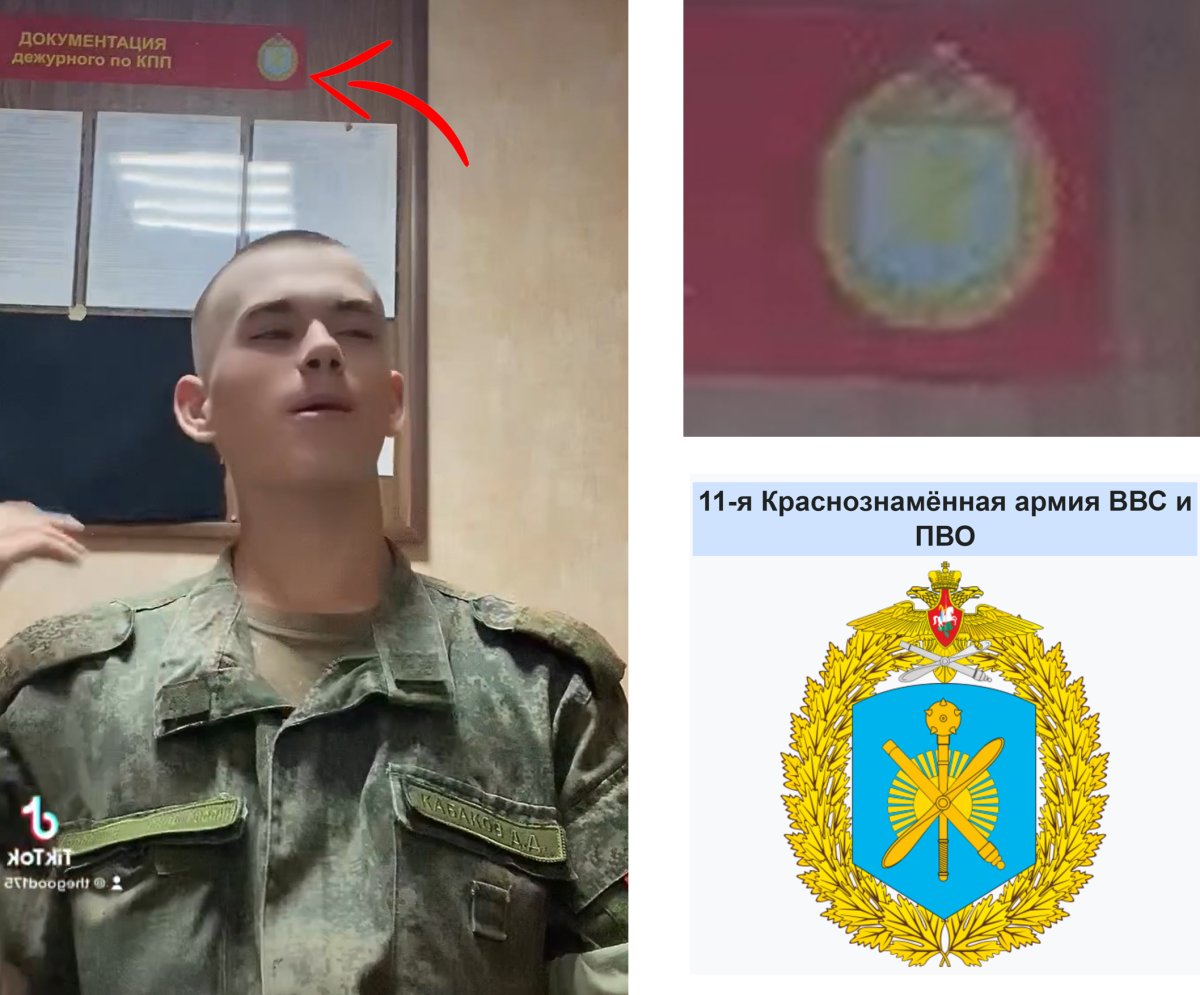 На видеоролике из TikTok, который Кабаков снял полгода назад, он в военной форме рядового с именным патчем на фоне логотипа, который напоминает логотип 11-й Краснознамённой армии ВВС и ПВО РФ (к ней относится ВЧ 31458, находящаяся в Комсомольске на Амуре). По данным открытых источников, на вооружении этого полка находятся ракетные комплексы С-400 и Панцирь-С1.