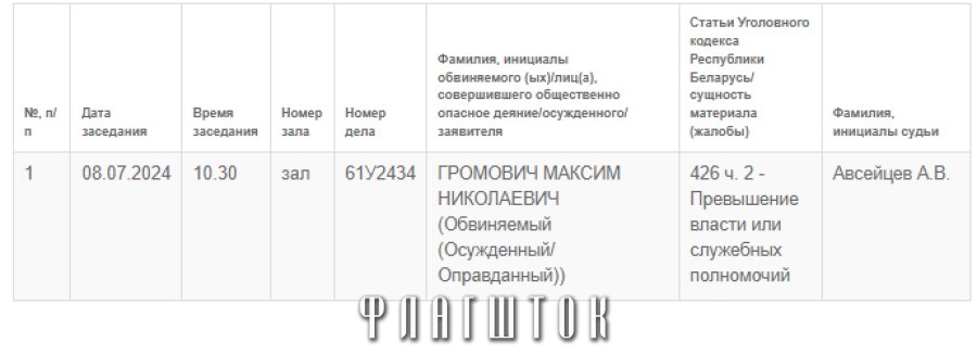 8 июля в суде Кормянского района состоится рассмотрение уголовного дела в отношении директора КСУП «Ново-Зеньковский» Максима Громовича. Руководителя сельхозпредприятия обвиняют по статье 426 ч. 2 «Превышение власти или служебных полномочий, совершенное из корыстной или иной личной заинтересованности». Максимальное наказание по данной статье — 6 лет лишения свободы.