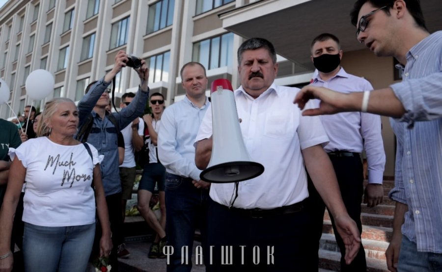 15 августа демонстранты подошли к зданию, к ним вышел председатель облисполкома Геннадий Соловей. Протестующие потребовали выпустить всех задержанных во время мирных протестов. Назавтра состоялся первый массовый марш гомельчан.