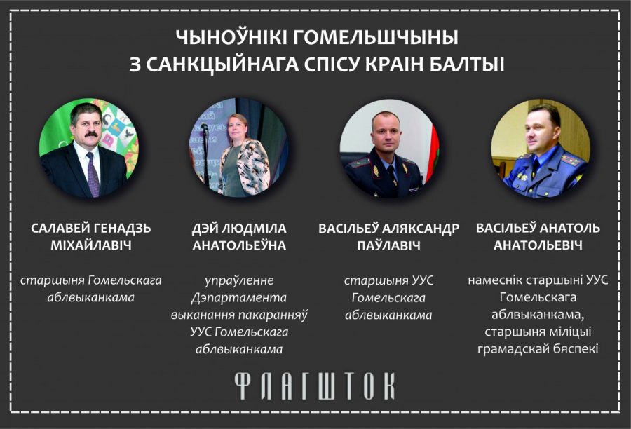 Власти Литвы, Латвии и Эстонии внесли в национальные санкционные списки 118 новых фамилий должностных особ из Беларуси. В список вошли чиновники, представители силовых структур. В нем оказались и представители Гомельской области: временно исполняющий обязанности начальника Рогачевского РОСК Андрей Куликов и полковник милиции, начальник отдела внутренних дел Жлобинского райисполкома Геннадий Мельник.